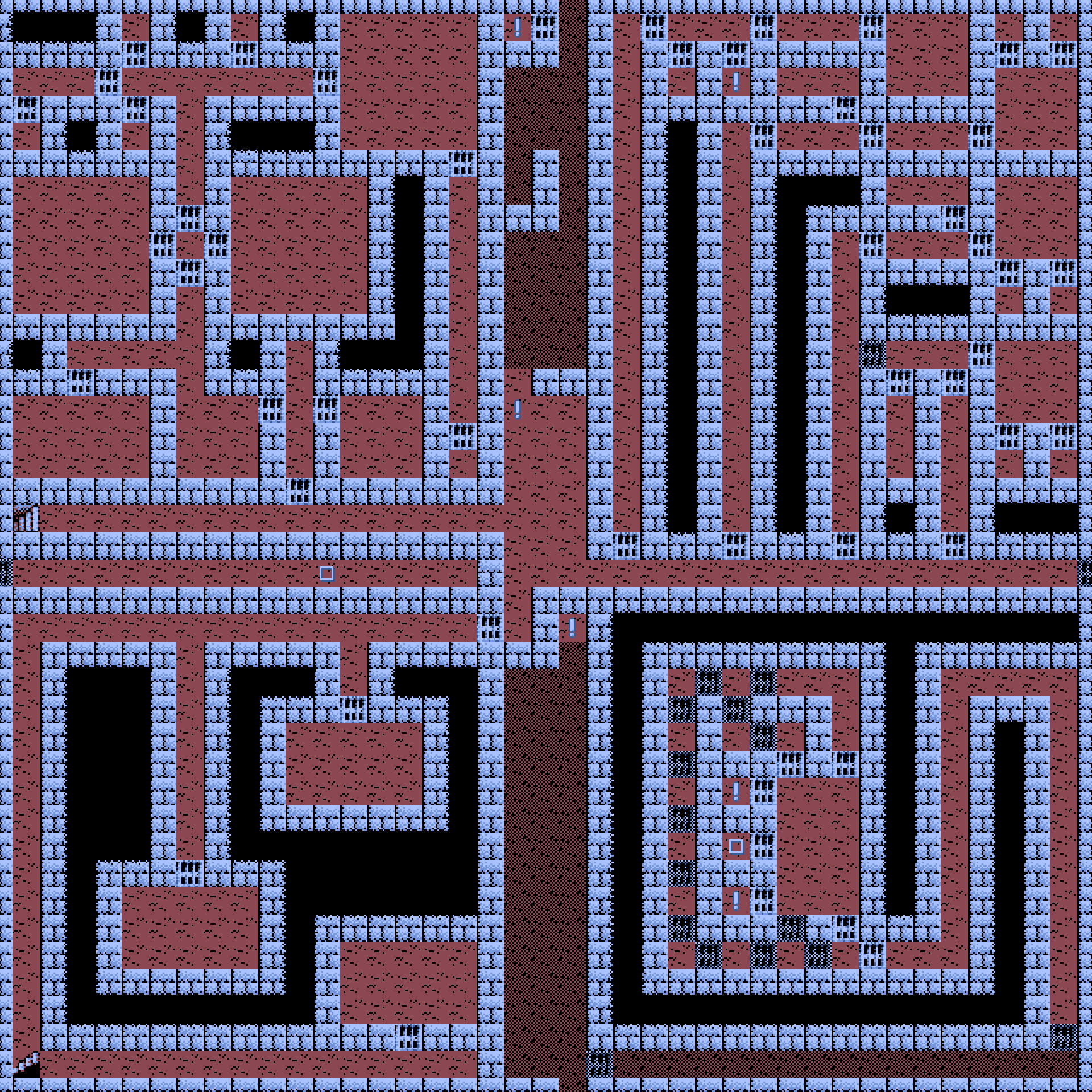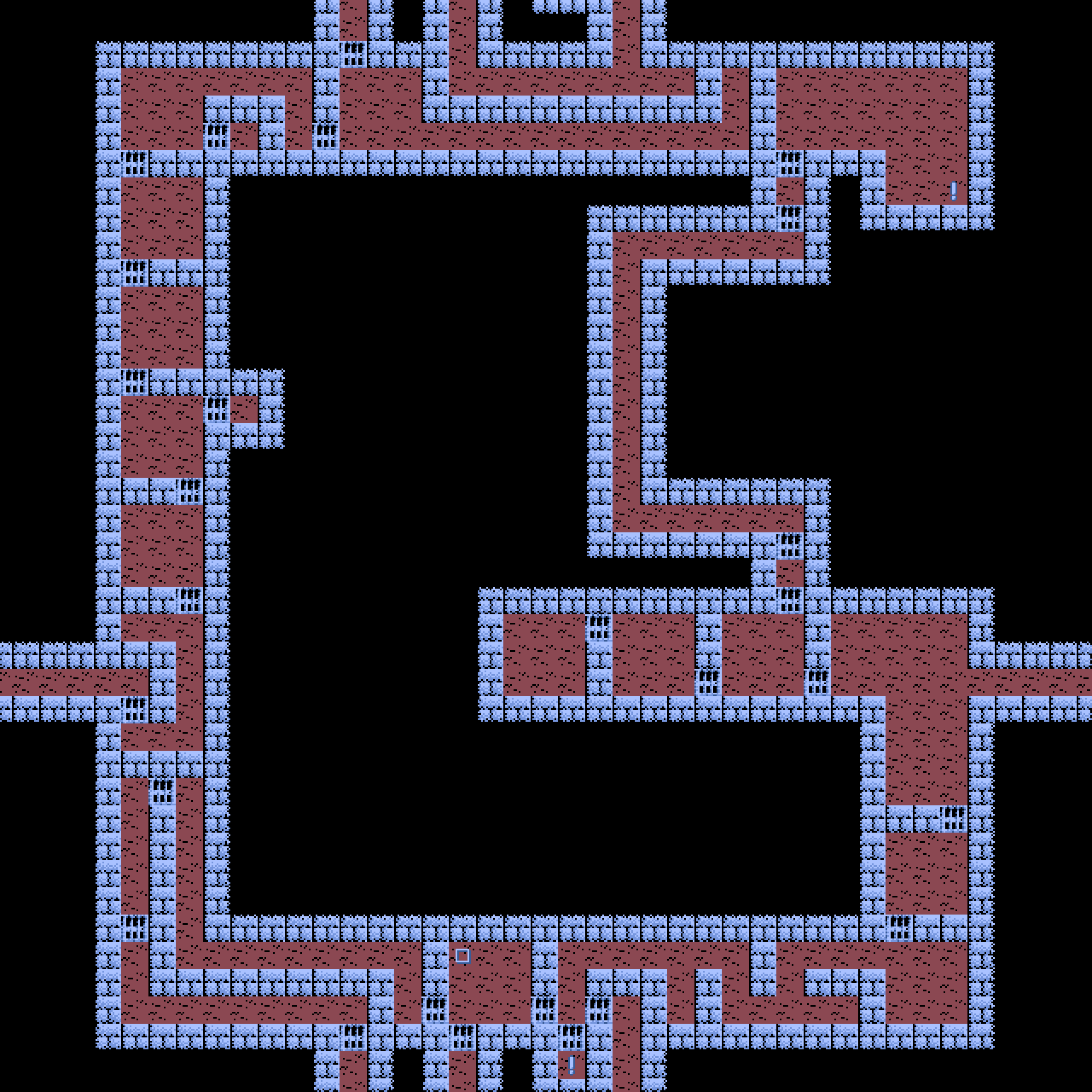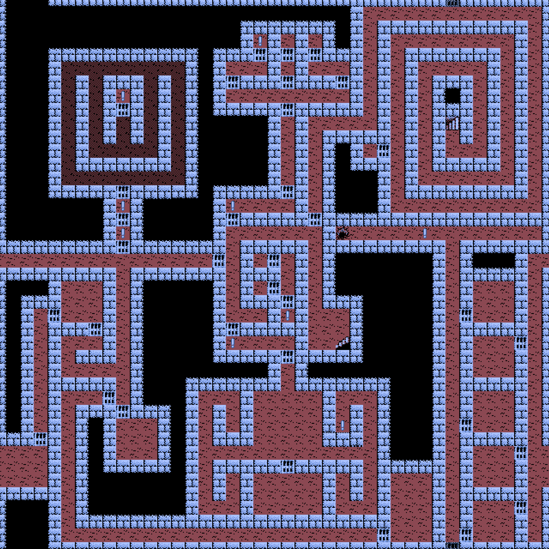 中央やや左上の!は、銀の鍵を持っていると自由に通れるようになります。